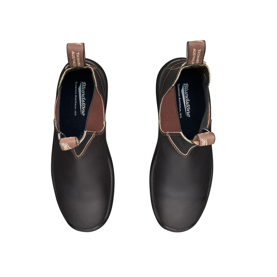 The #162 work boot checks all the safety boxes so you can focus on the job at hand. Blundstone protective steel toe safety and dry all-day comfort, even on concrete. Flexible, comfortable and pull-on, kick-off easy to keep mud and debris off car mats, indoor carpets and new floors. Lightweight and durable with a sole resistant to electrical, chemical and acid dangers. CSA approved.