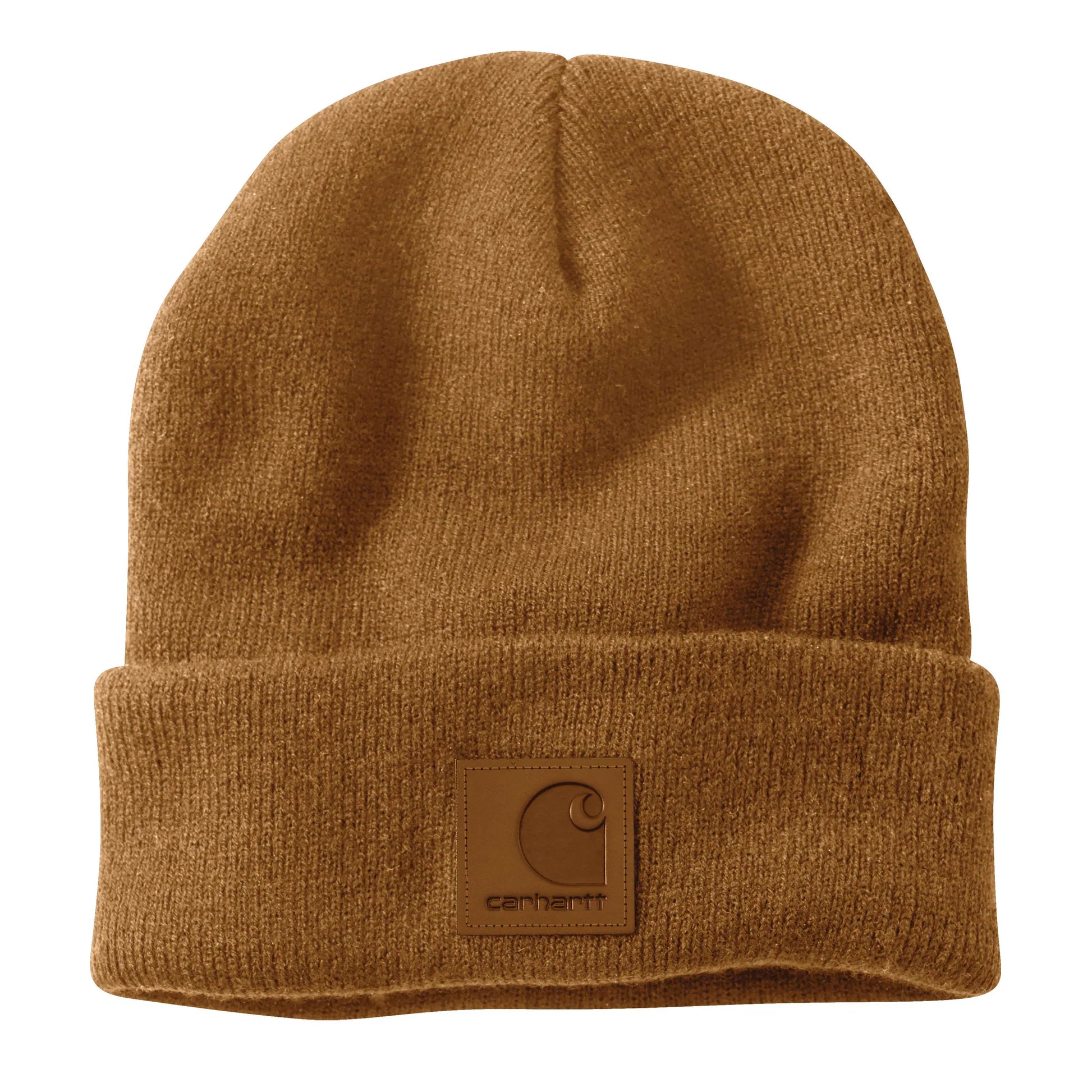 Hat Carhartt Rib Cuff Leather Logo Beanie