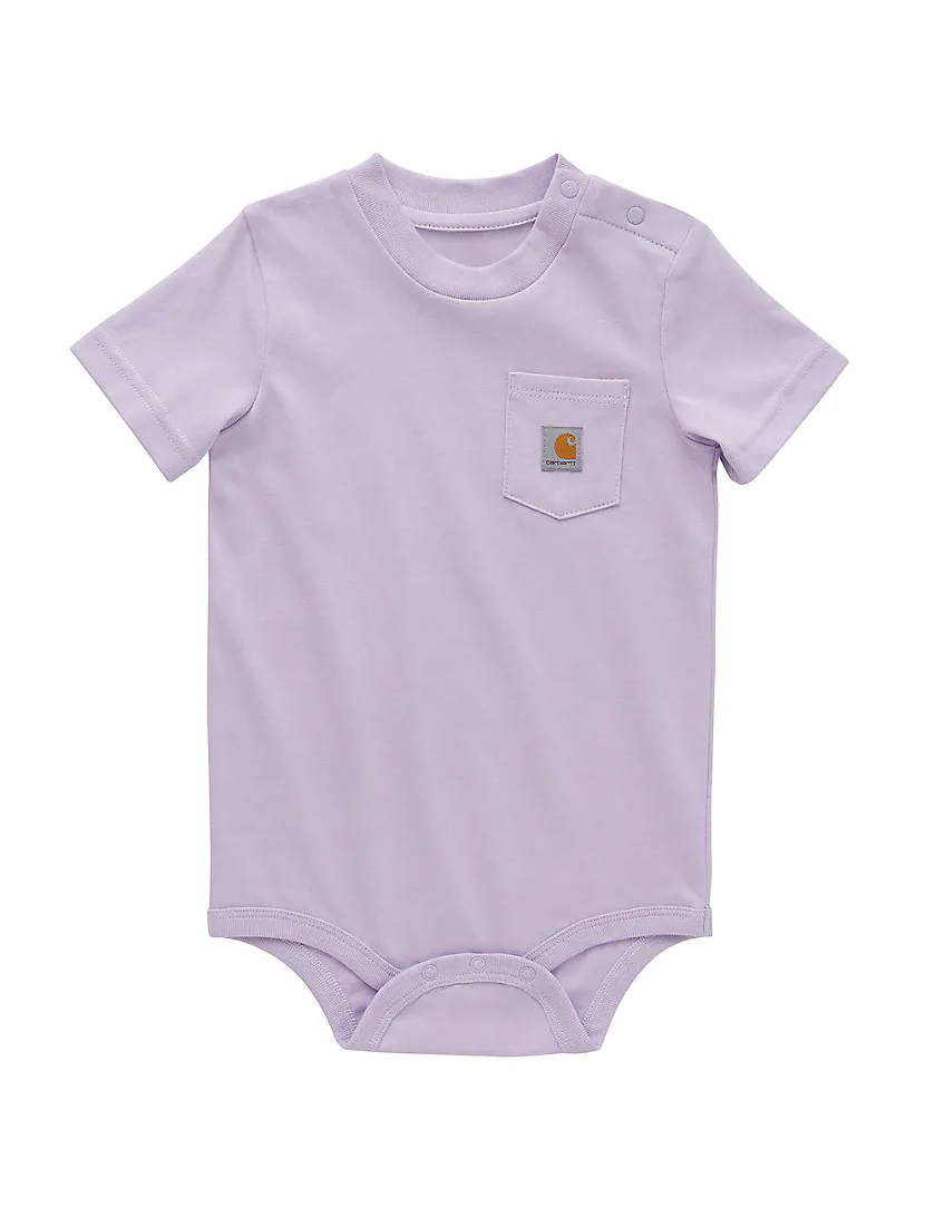 Uncomplicated. Just soft cotton and Carhartt durability. That's what you get with this baby bodysuit. Snaps on the shoulders and crotch make quick changes easy. Tag-free means total comfort.
