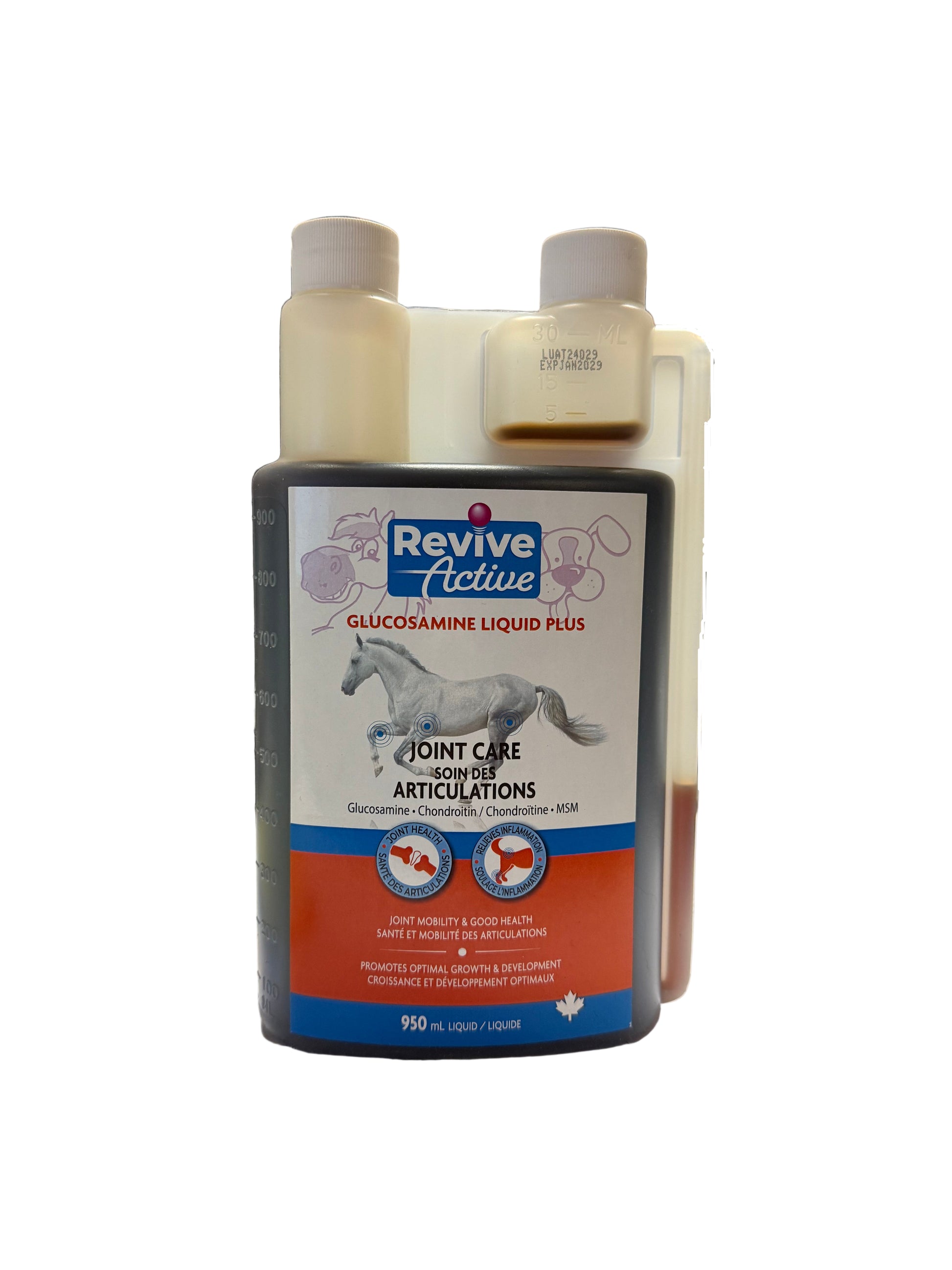 Revive Active's Made in Canada joint care liquid combines the benefits of glucosamine, chondroitin, MSM and New Zealand Green Lipped Mussels to relieve the pain of osteoarthritis and joint inflammation. Glucosamine is a significant component of joint cartilage, promoting skeletal and joint health, while chondroitin gives cartilage its elasticity and cushioning. MSM (Methylsulfonylmethane) is a sulfur-containing compound found naturally in animals and plants and reduces joint inflammation and pain.