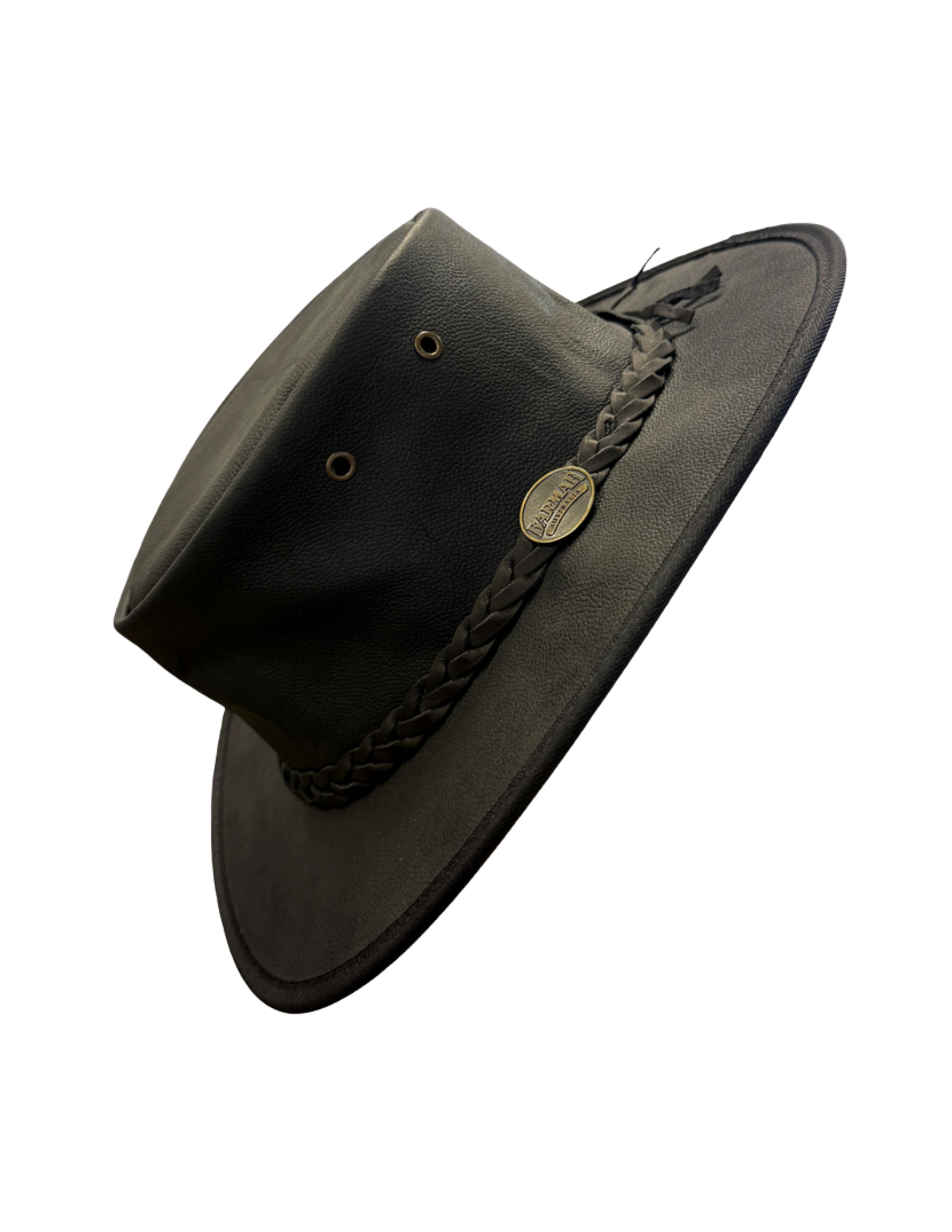 The outback BARMAH Squashy Roo Sundowner hat is crafted from genuine kangaroo leather, this beauty offers rugged durability and a distinctive finish that only improves with wear. The soft supple leather molds to your head for a custom fit, designed to be a functional and durable hat for outdoorsman adventures. With traditional craftsmanship and premium materials that'll last through seasons of adventure. This outback hat also includes a bag for safe keeping, these hats are meant to be SQUASHED and put straight into their dedicated bag!