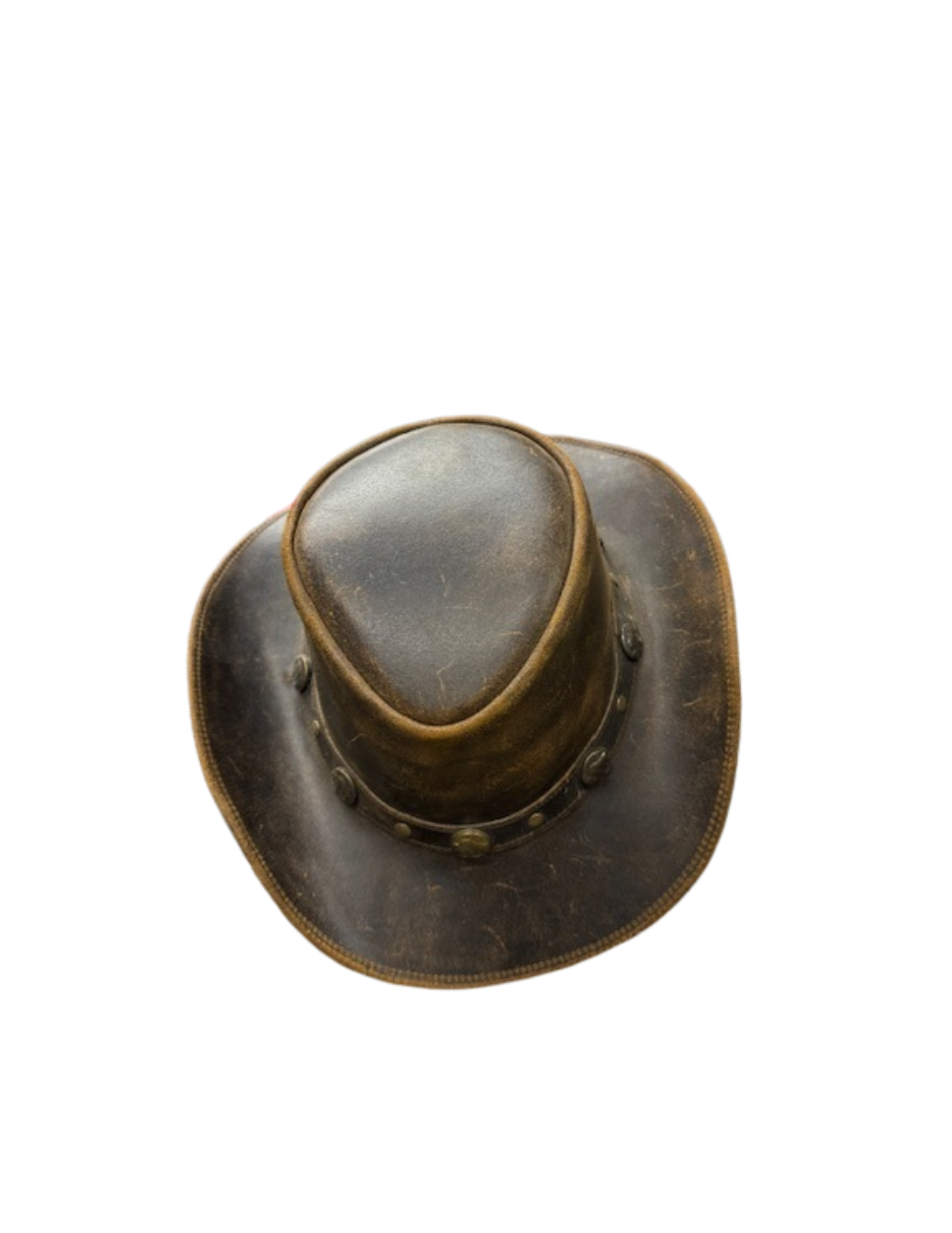 Saddle up in authentic western style with this striking Cowboy Hat featuring rich crackled brown leather. The weathered texture gives it genuine character and a time-worn appeal that speaks to the rugged spirit of the frontier. Crafted for comfort and durability, this hat delivers classic cowboy aesthetics with practical wear. Whether you're hitting the trail or making a statement at the rodeo, this piece captures the essence of true western heritage. A timeless essential for any serious cowboy or cowgirl.