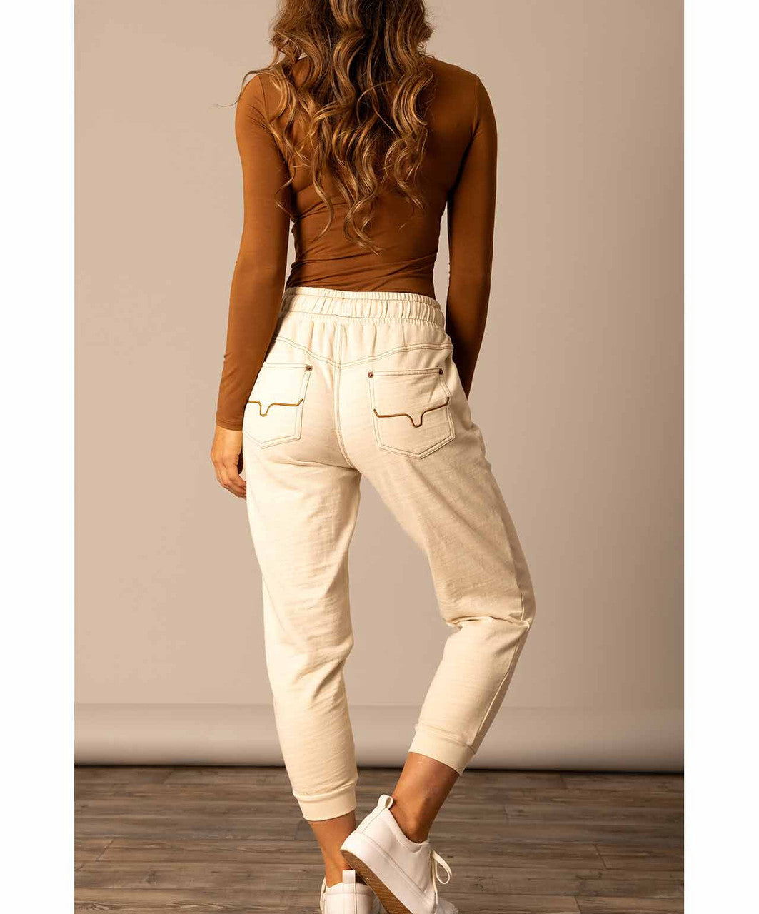 The Kimes Ranch Ladies Joanie Pants brings a stylish Western twist to your everyday lounge wear. These mid-rise joggers feature a comfortable drawstring waist and a relaxed fit that's perfect for casual days or cozy nights in. Crafted from a soft and breathable 85% cotton, 15% polyester blend, they offer the perfect balance of comfort and durability. Thoughtful details like antique copper trim accents and signature longhorn embroidery on the rear pockets add a touch of Kimes Ranch flair. Whether you're on the move or taking it easy, the Joanie Sweatpant delivers laid-back style with a Western edge.